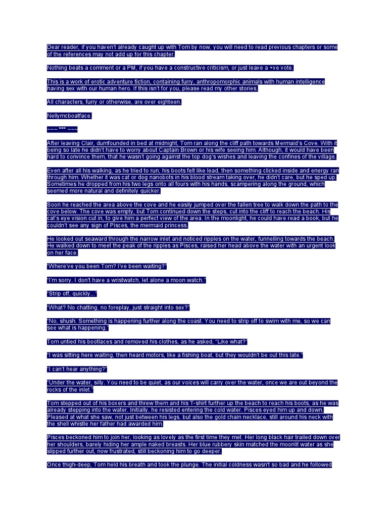 “No, shush. Something is happening further along the coast. You need to strip off to swim with me, so we can