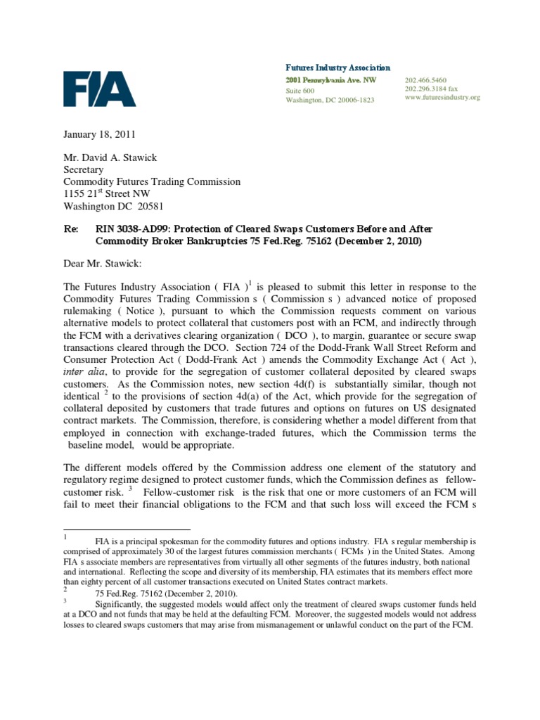FIA recently filed with the Commission a revised comment letter in connection with the