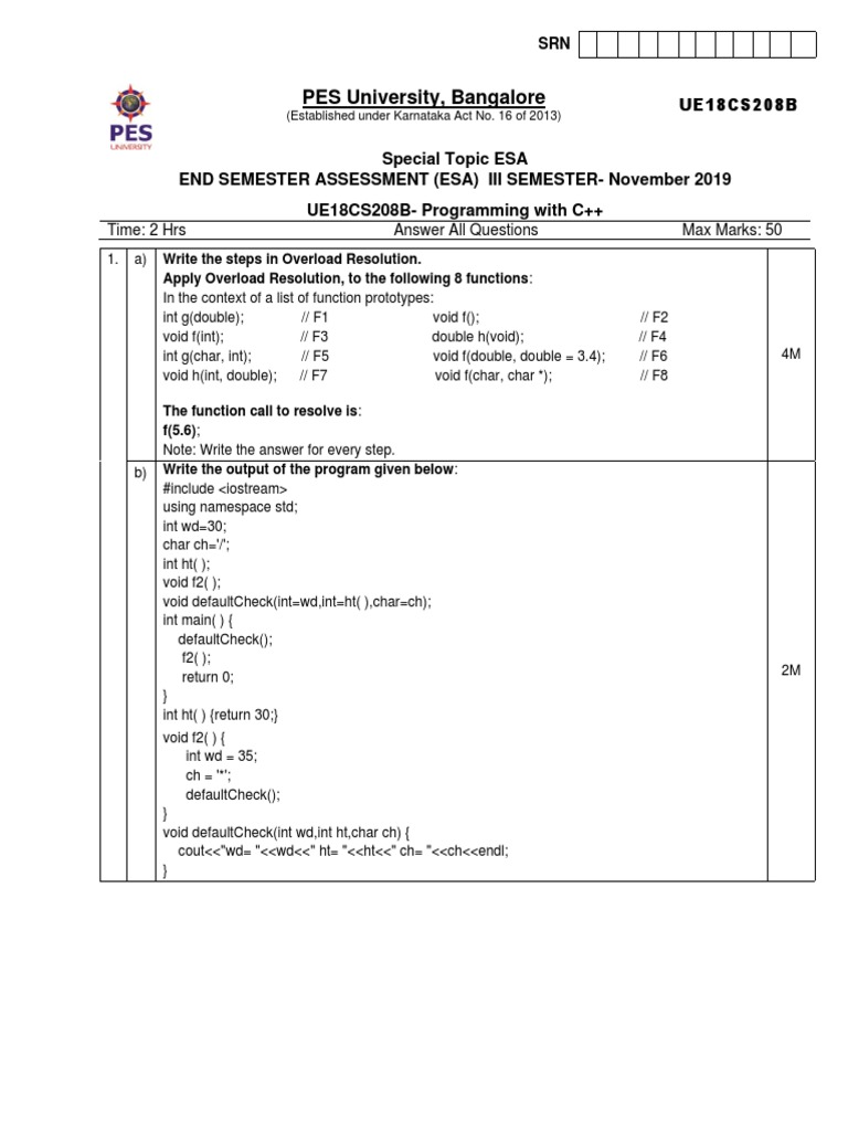 UE18CS208B- Programming with C++