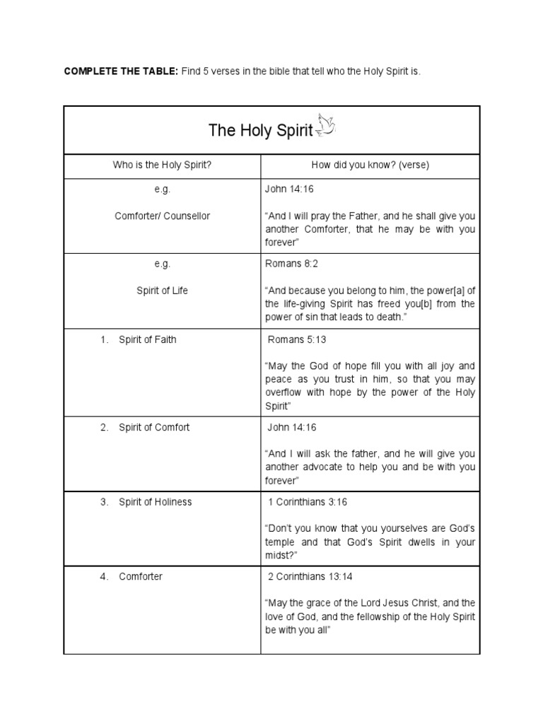 COMPLETE THE TABLE: Find 5 verses in the bible that tell who the Holy Spirit is.