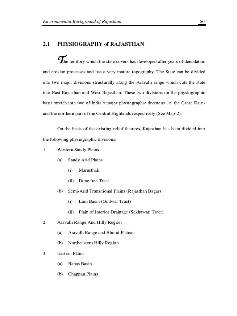 2.1 PHYSIOGRAPHY of RAJASTHAN