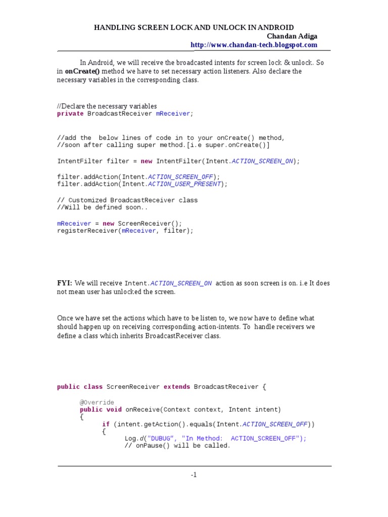 HANDLING SCREEN LOCK AND UNLOCK IN ANDROID