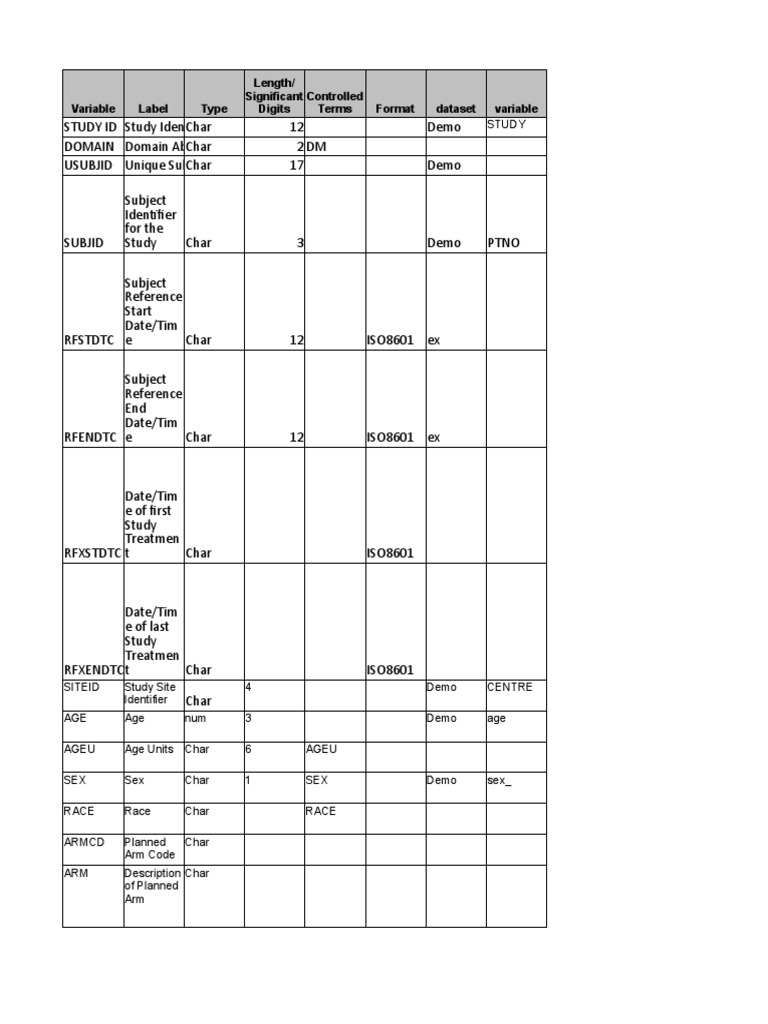 STUDY ID Study Identifier Char 12 Demo STUDY