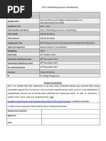 Unit Number and Title UNIT 2: MARKETING PROCESSES AND PLANNING (LEVEL 4)