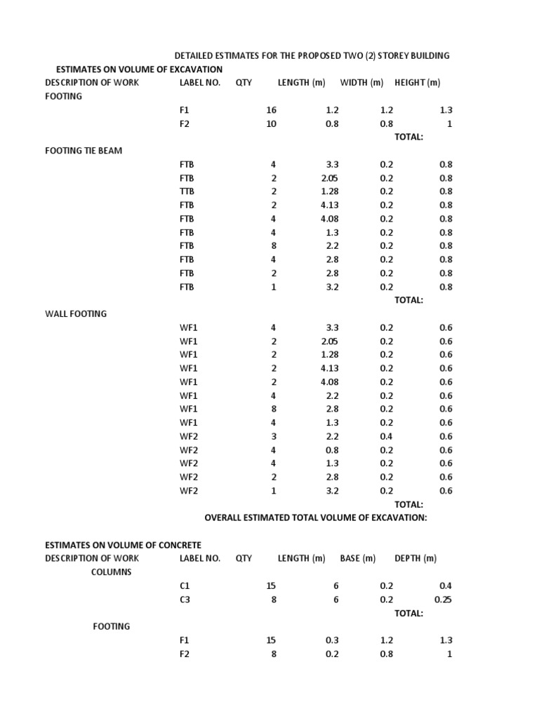 DETAILED ESTIMATES FOR THE PROPOSED TWO (2) STOREY BUILDING