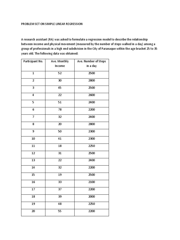 PROBLEM SET ON SIMPLE LINEAR REGRESSION
