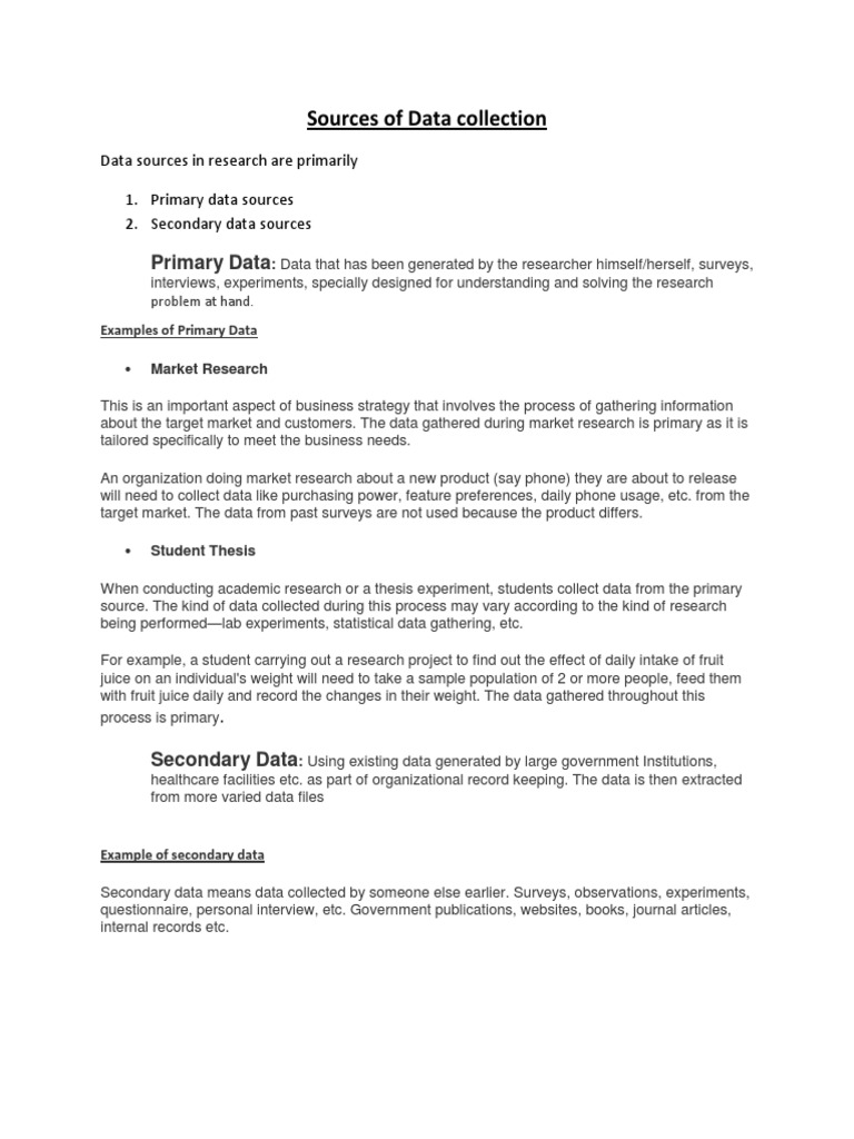 Sources of Data collection