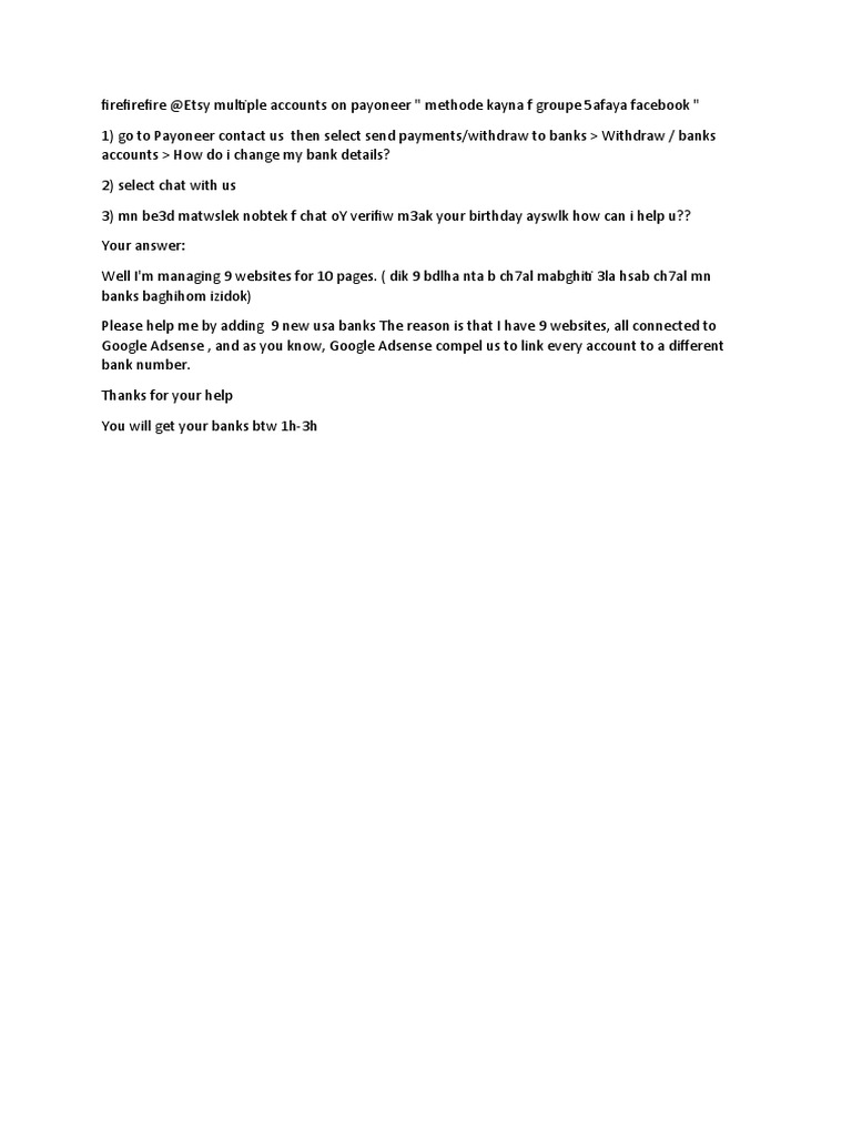 firefirefire @Etsy multiple accounts on payoneer " methode kayna f groupe 5afaya facebook "