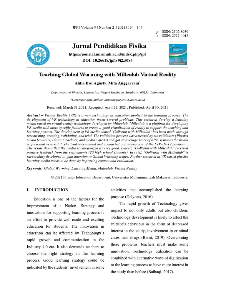 Jurnal Pendidikan Fisika: Teaching Global Warming With Millealab Virtual Reality