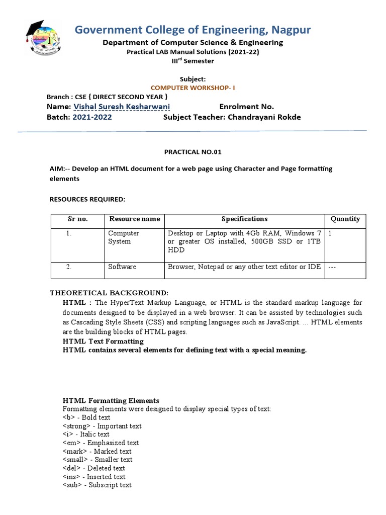 AIM:-- Develop an HTML document for a web page using Character and Page formatting