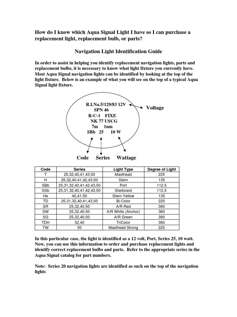Note: Series 20 navigation lights are identified as such on the top of the navigation
