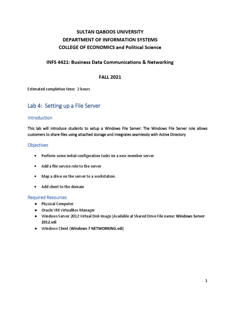 This lab will introduce students to setup a Windows File Server: The Windows File Server role allows