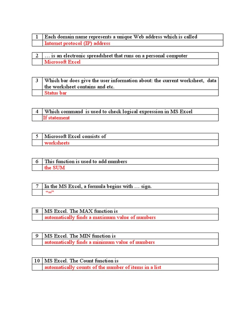 =IF(SUM(C1:C10)=10;”Excellent”;”Bad”)