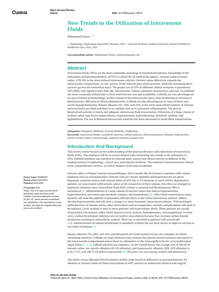 Intravenous fluids (IVFs) are the most commonly used drugs in hospitalized patients. Knowledge of the
