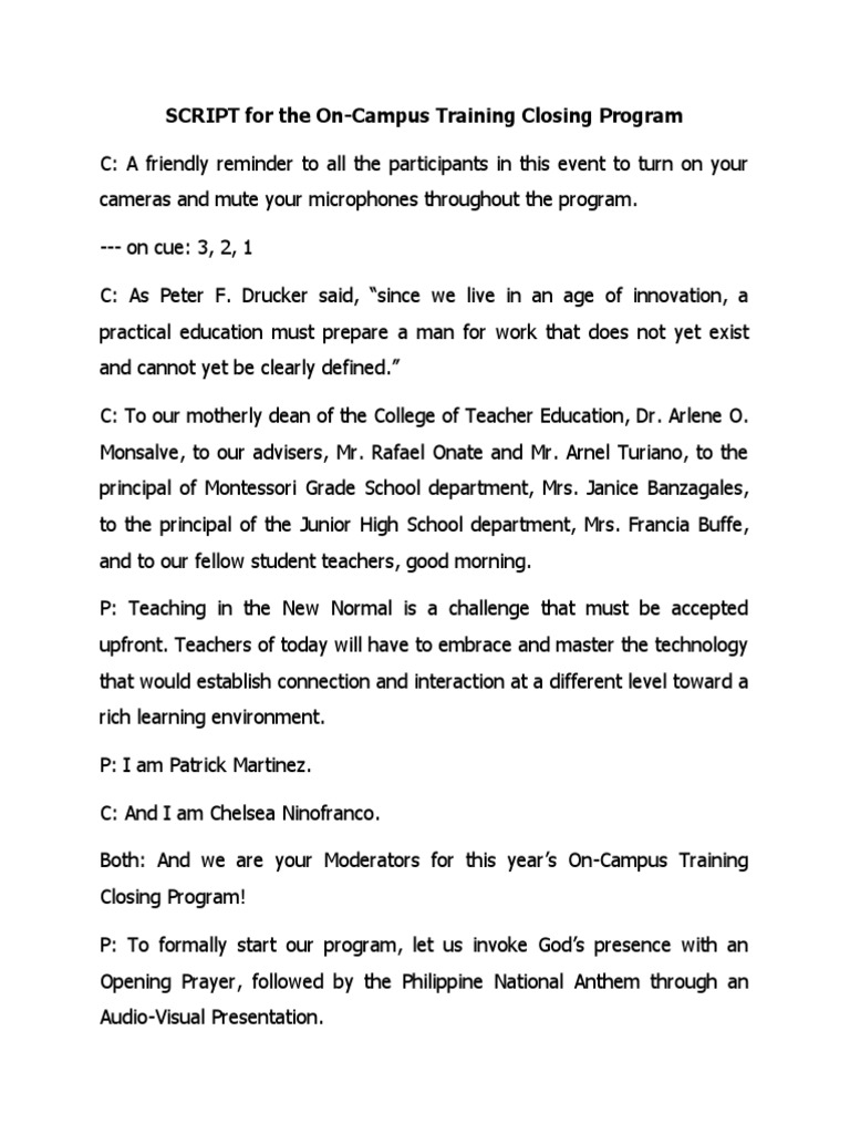 C: (repeat few striking lines of dean’s message for emphasis) Thank you