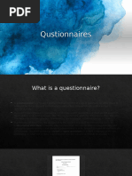 A questionnaire is a research tool that consists of a series of questions, each with a set of possible