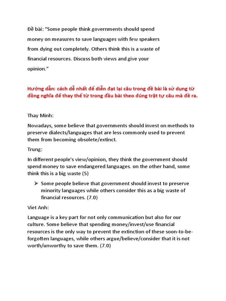 Đề bài: “Some people think governments should spend