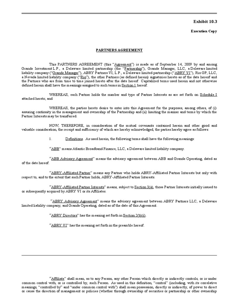 liability company (“Grande Manager”), ABRY Partners VI, L.P., a Delaware limited partnership (“ABRY VI”), Rio GP, LLC,