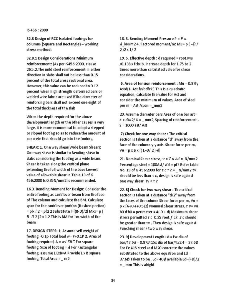 32.8 Design of RCC Isolated footings for 18. 3. Bending Moment Pressure P = 𝑃 𝑢