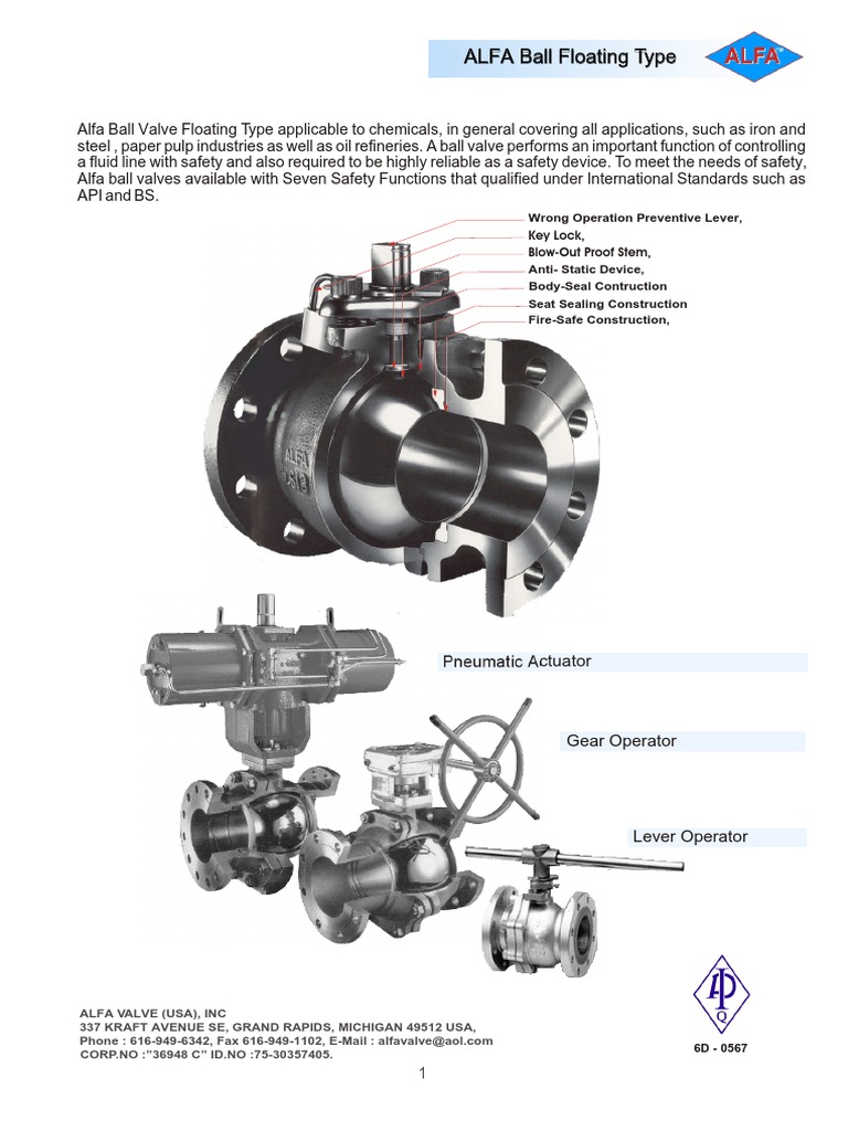 Alfa ball valves available with Seven Safety Functions that qualified under International Standards such as