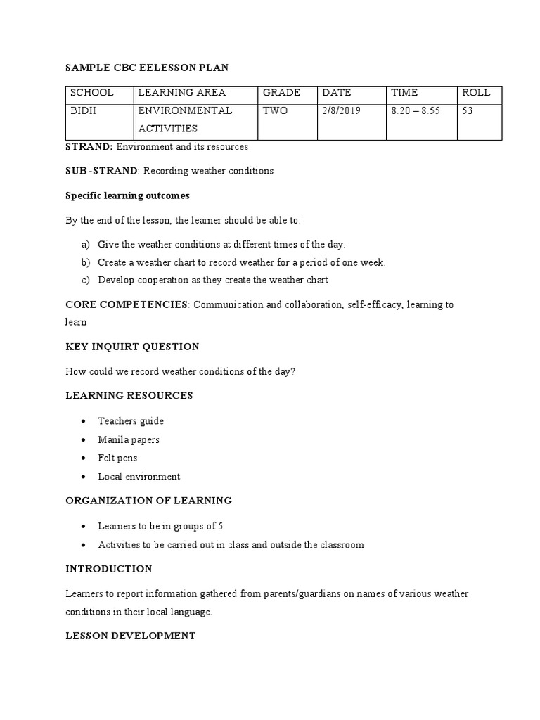 SAMPLE CBC EELESSON PLAN