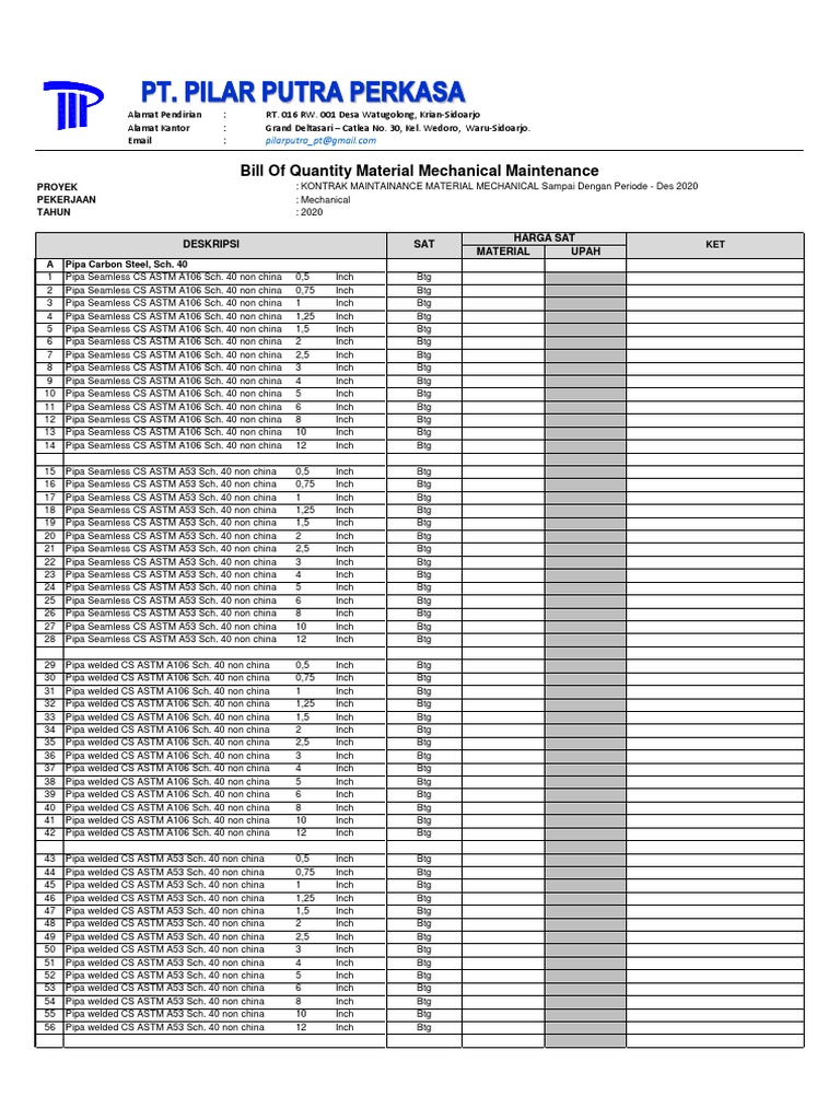 PROYEK : KONTRAK MAINTAINANCE MATERIAL MECHANICAL Sampai Dengan Periode - Des 2020