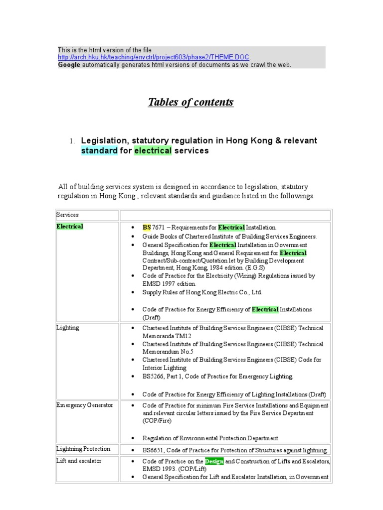Buildings, Hong Kong and General Requirement for Electrical