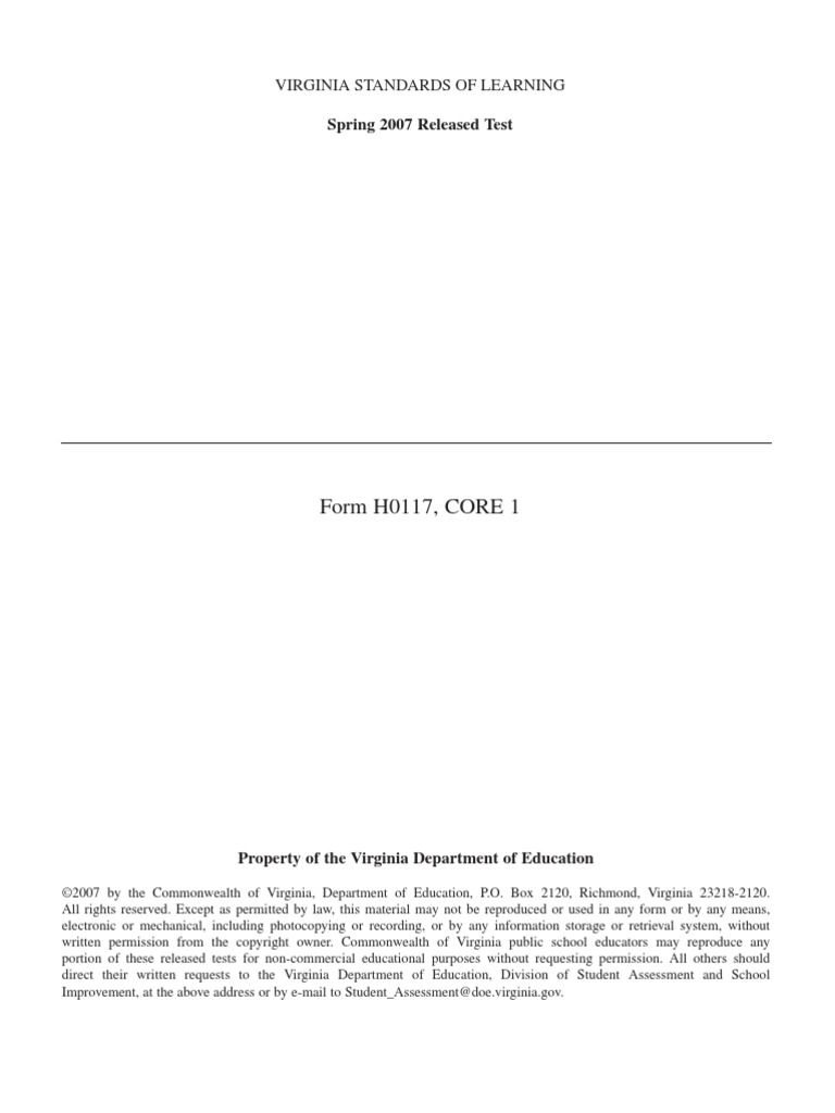 ©2007 by the Commonwealth of Virginia, Department of Education, P.O. Box 2120, Richmond, Virginia 23218-2120.