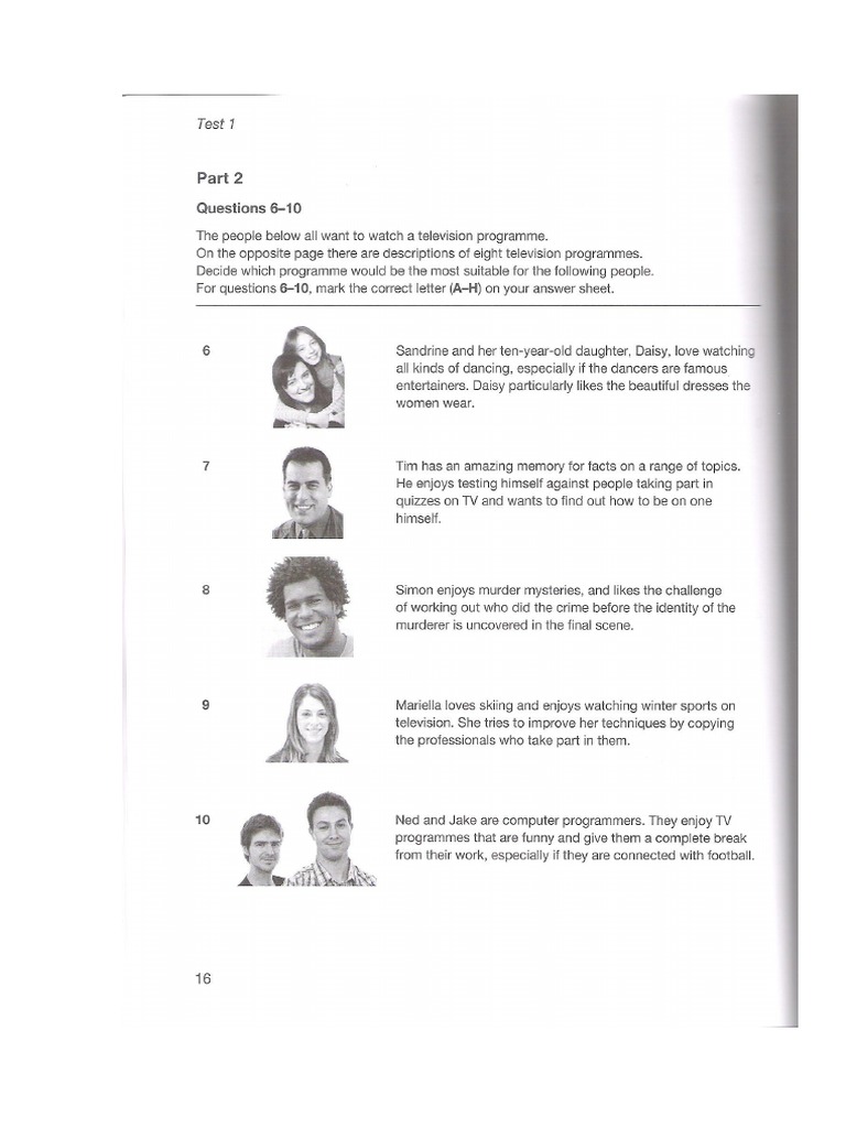 Decide which programme would be the most suitable for the following people.