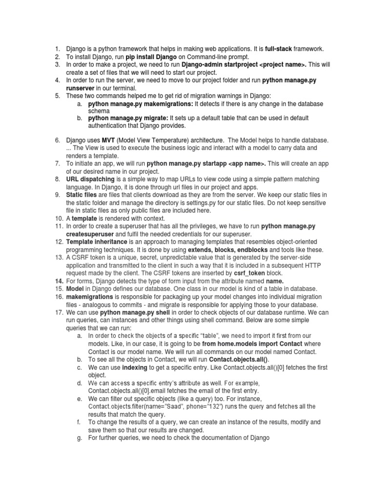 1. Django is a python framework that helps in making web applications. It is full-stack framework.