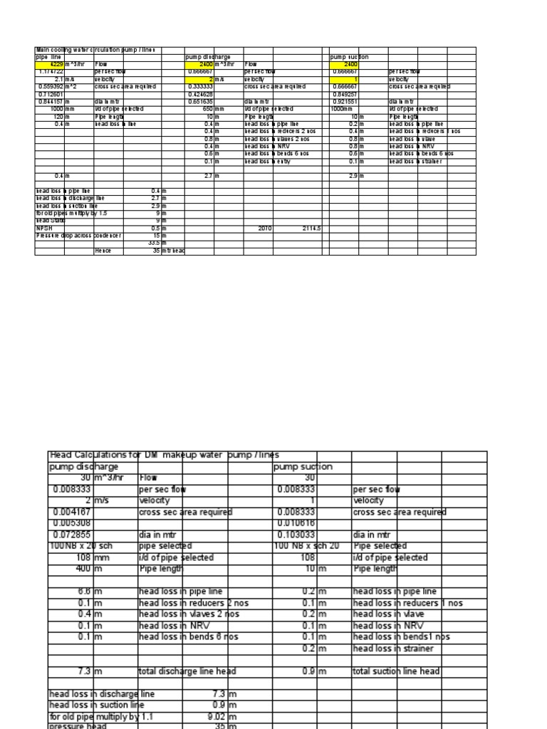 Head Calculations for DM makeup water pump / lines