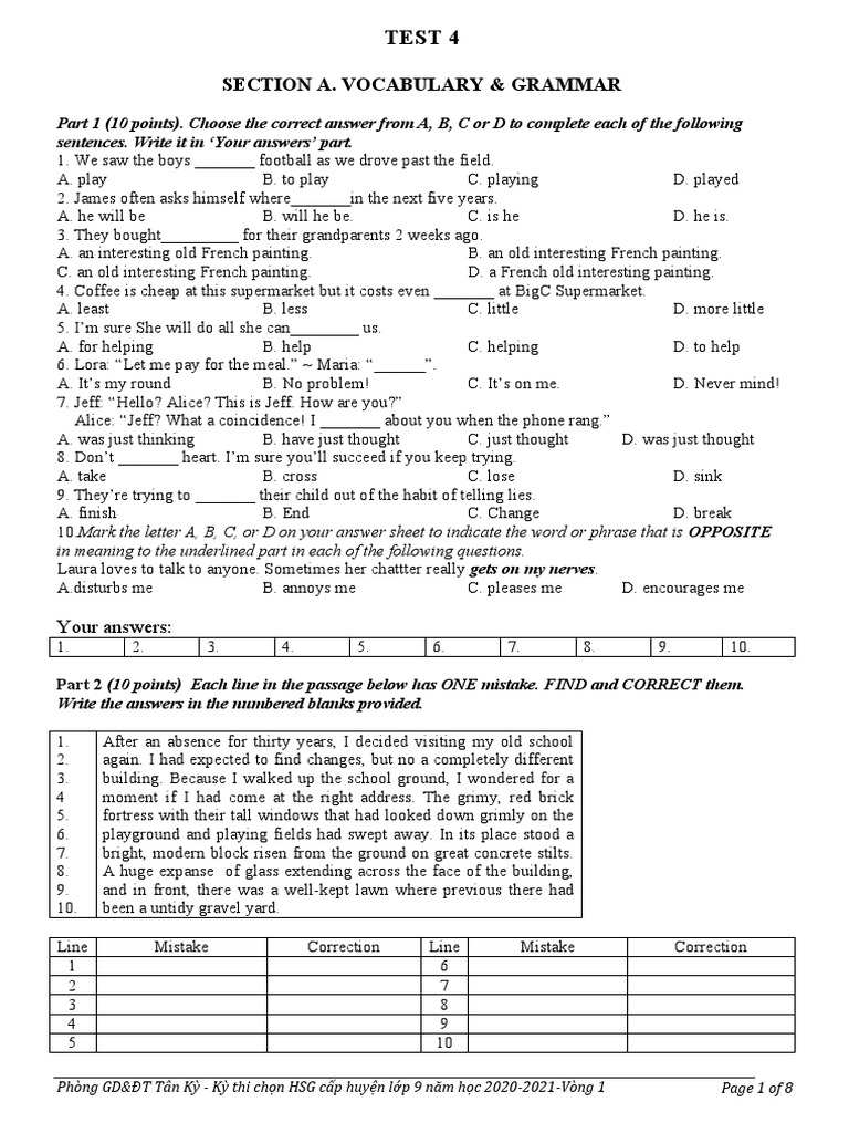 Phòng GD&ĐT Tân Kỳ - Kỳ thi chọn HSG cấp huyện lớp 9 năm học 2020-2021-Vòng 1 Page 8 of 8