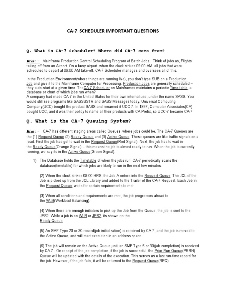 CA-7 SCHEDULER IMPORTANT QUESTIONS