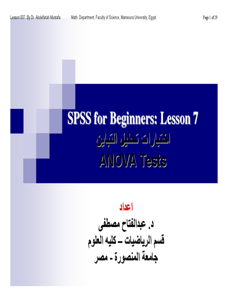 اﻟﺘﺒﺎﻳﻦ ﻓﻰ اﺗﺠﺎهﻴﻦ ﺑﺎﺳﺘﺨﺪام ﺑﺮﻧﺎﻣﺞ :SPSS