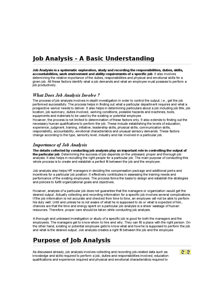 However, analysis of a particular job does not guarantee that the managers or organization would get the