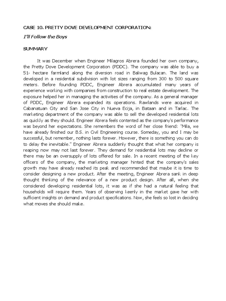 design. Pretty Dove Development Corporation (PDDC) has a need to own a