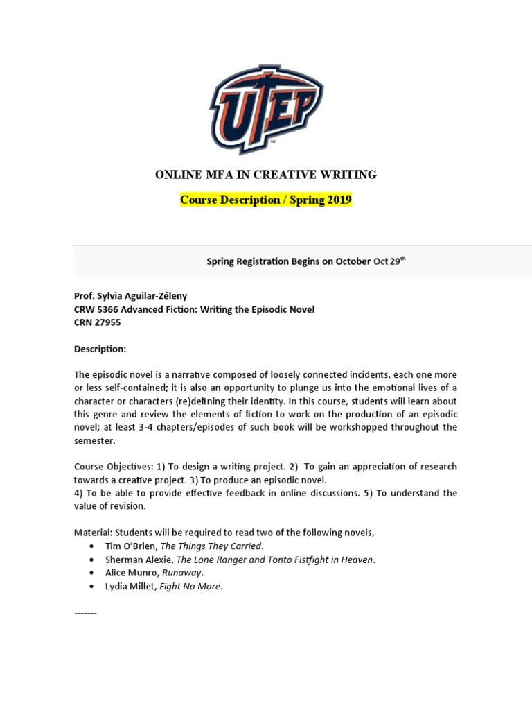 CRW 5366 Advanced Fiction: Writing the Episodic Novel
