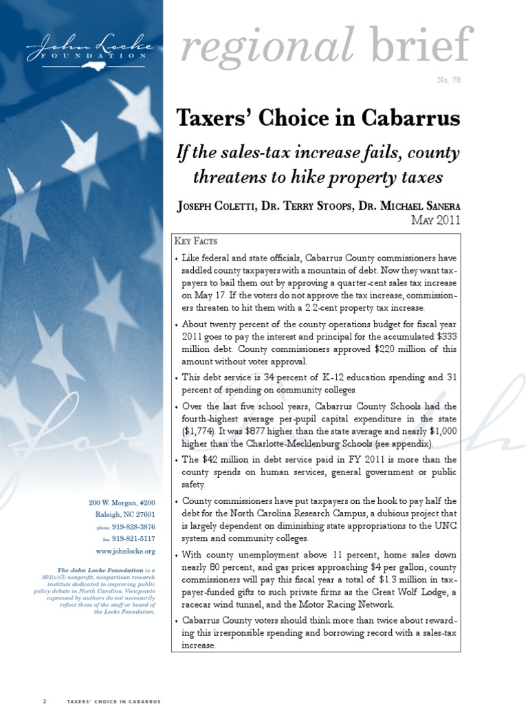 Regional Brief 78 Taxers' Choice in Cabarrus: If The Sales-Tax Increase Fails, County Threatens To Hike Property Taxes