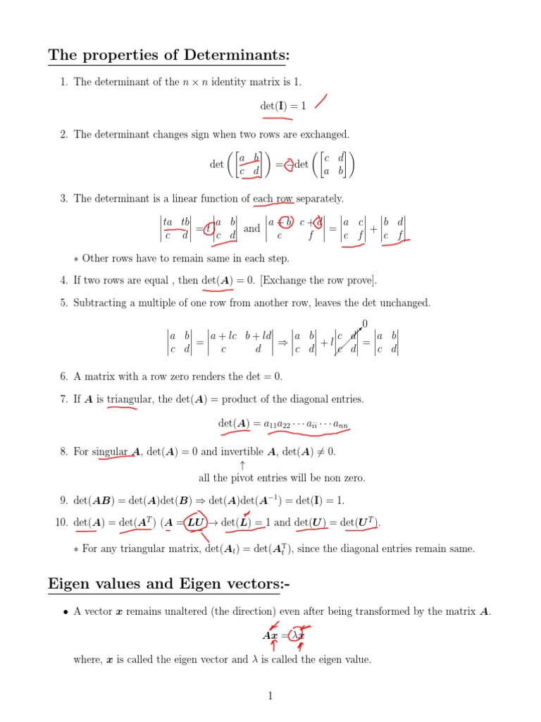 Properties of Determinants and Eigenvalues
