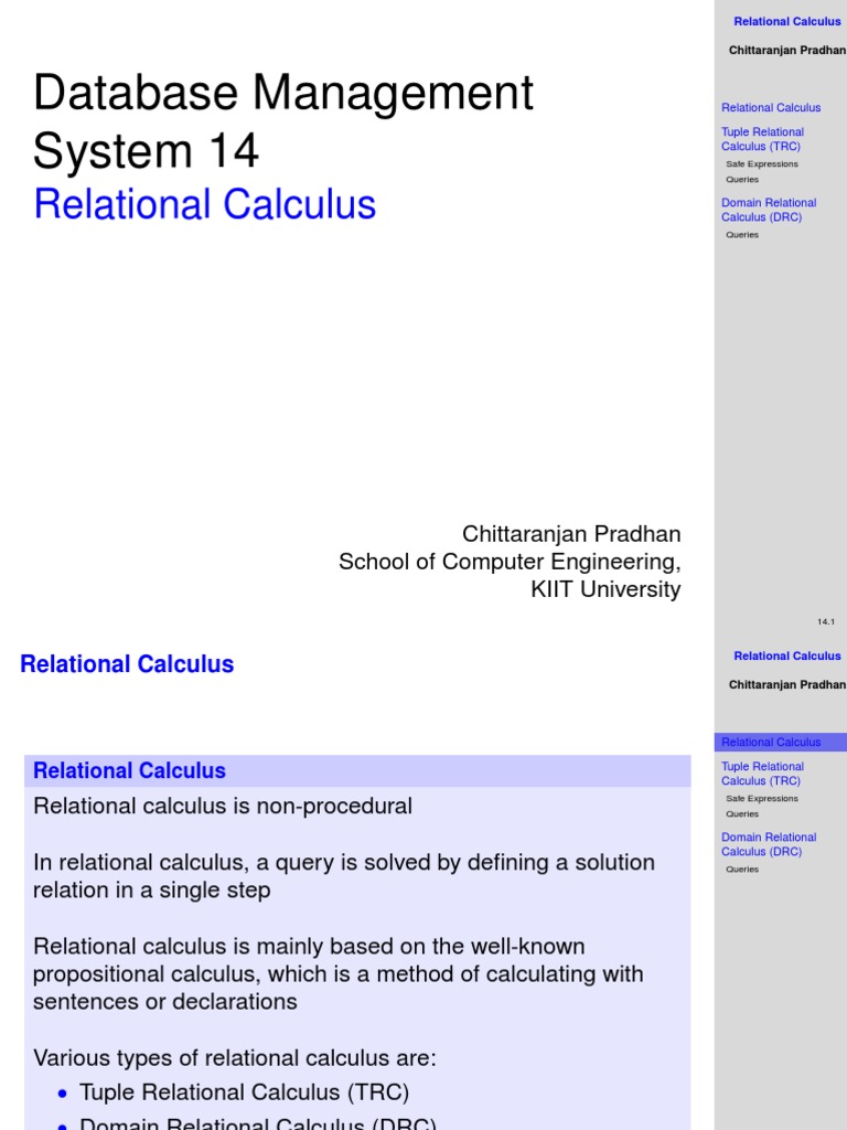 In tuple relational calculus, the variables range over the tuples Calculus (TRC)