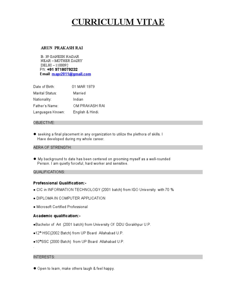 ●Bachelor of Art (2001 batch) from University Of DDU Gorakhpur U.P.