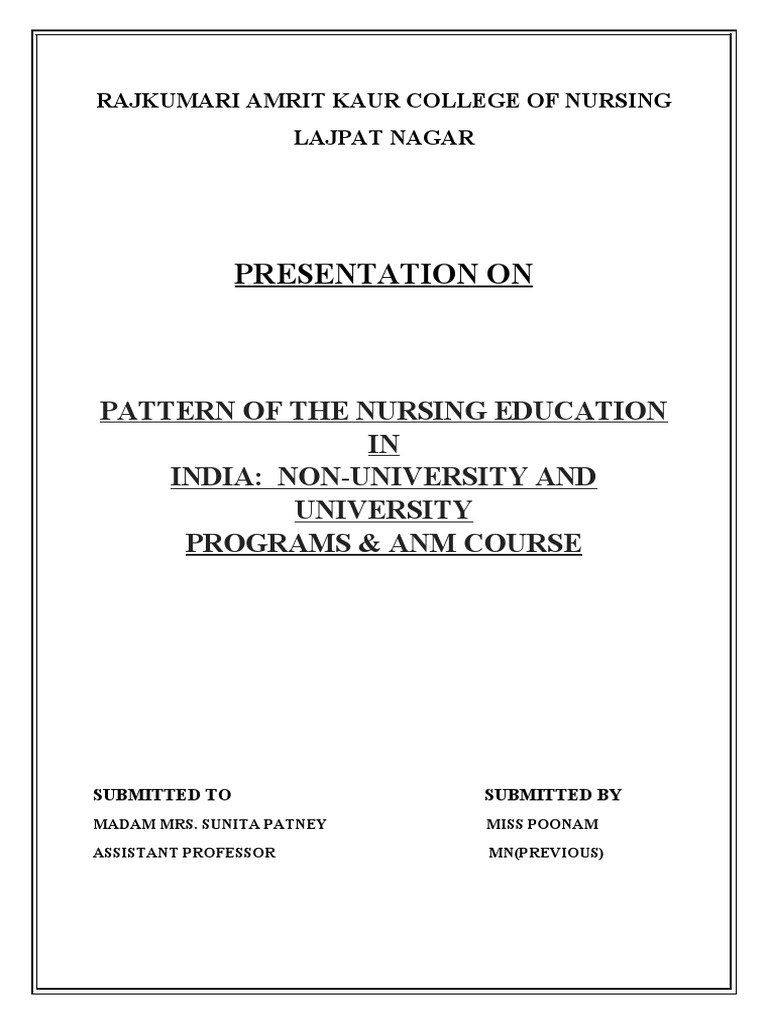 PATTERN OF NURSING EDUCATION AND TRAINING PROGRAM
