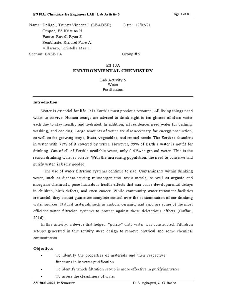 ES 10A: Chemistry for Engineers LAB | Lab Activity 5 Page 1 of 8