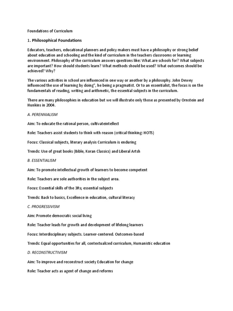 environment. Philosophy of the curriculum answers questions like: [Link] schools for? What subjects