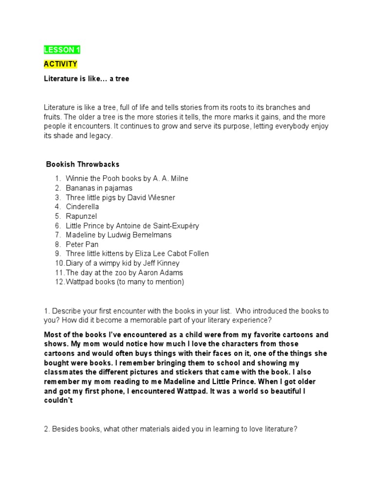 your previous relationship with literature as a child or adolescent in and out of the