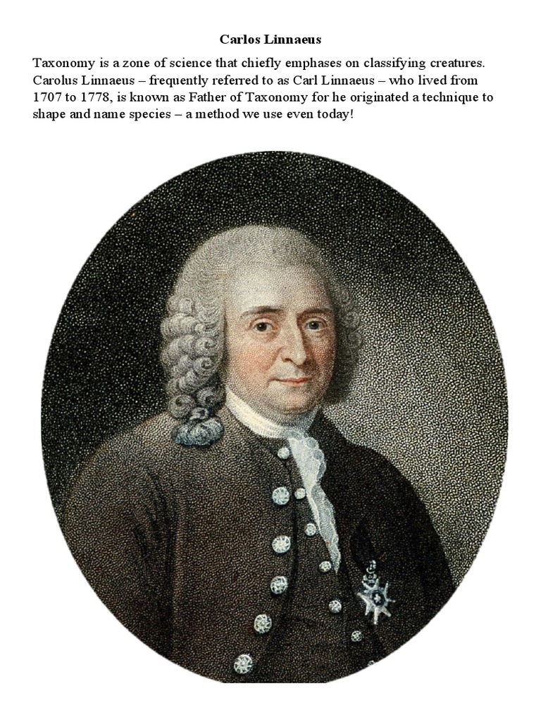 Carolus Linnaeus – frequently referred to as Carl Linnaeus – who lived from