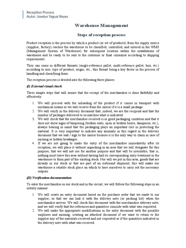 (supplier, factory) reaches the warehouse to be classified, controlled, and entered in the WMS