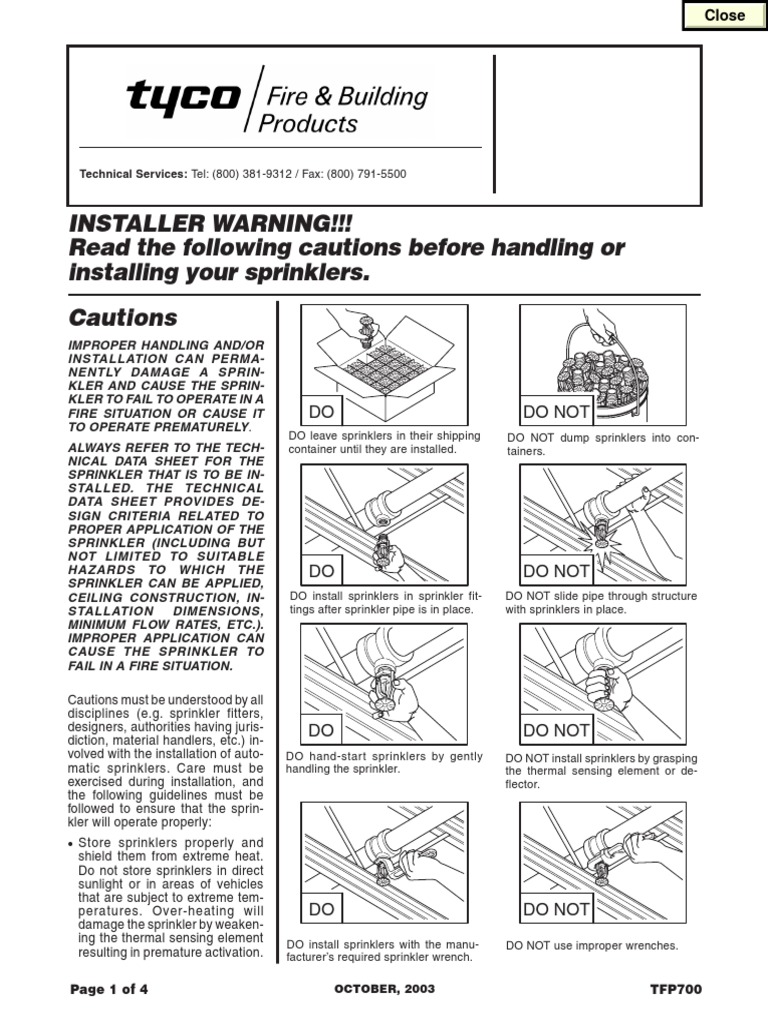 designed to protect the sprinkler hand can cause damage to the tions” provided in this data sheet.
