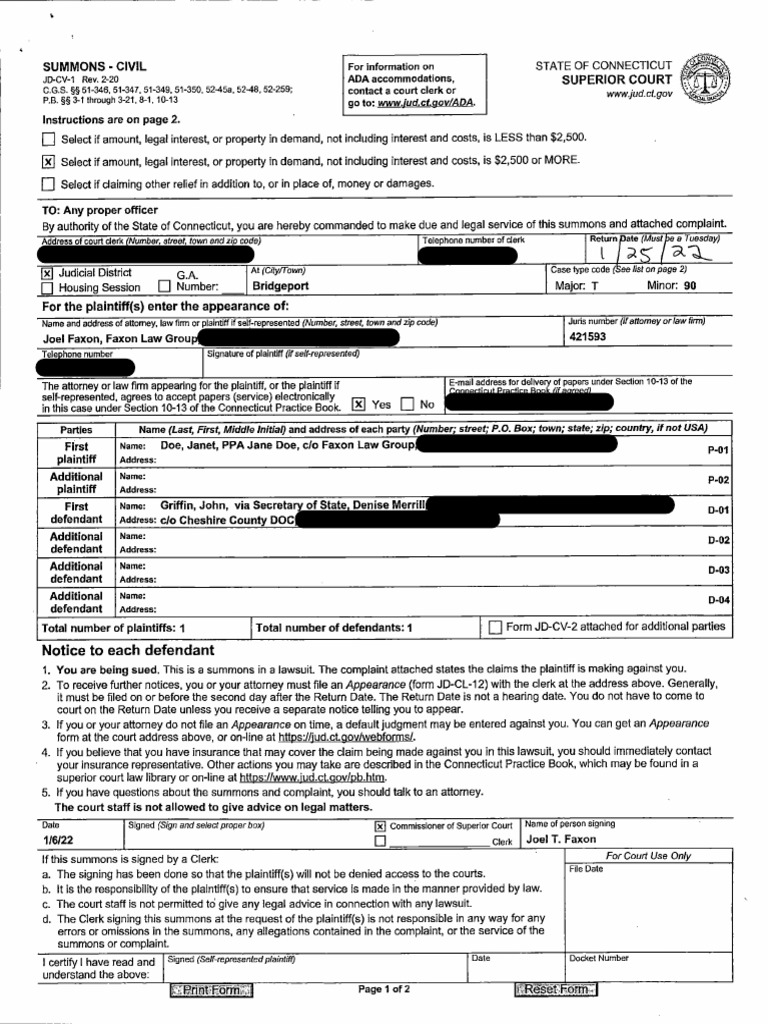 ‘SUMMONS - CIVIL For information on| STATE OF CONNECTICUT