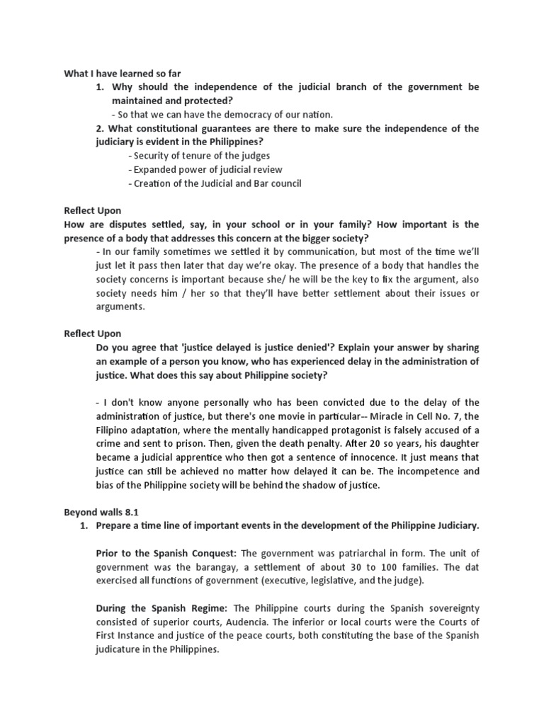 1. Prepare a time line of important events in the development of the Philippine Judiciary.